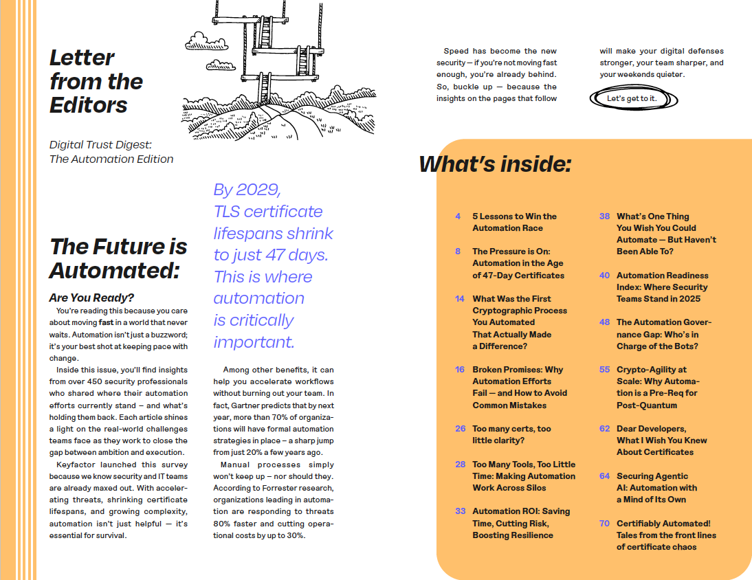 Keyfactor’s latest issue of Digital Trust Digest focuses on automation – what’s driving it, what’s slowing it down, and why it matters now more than ever.