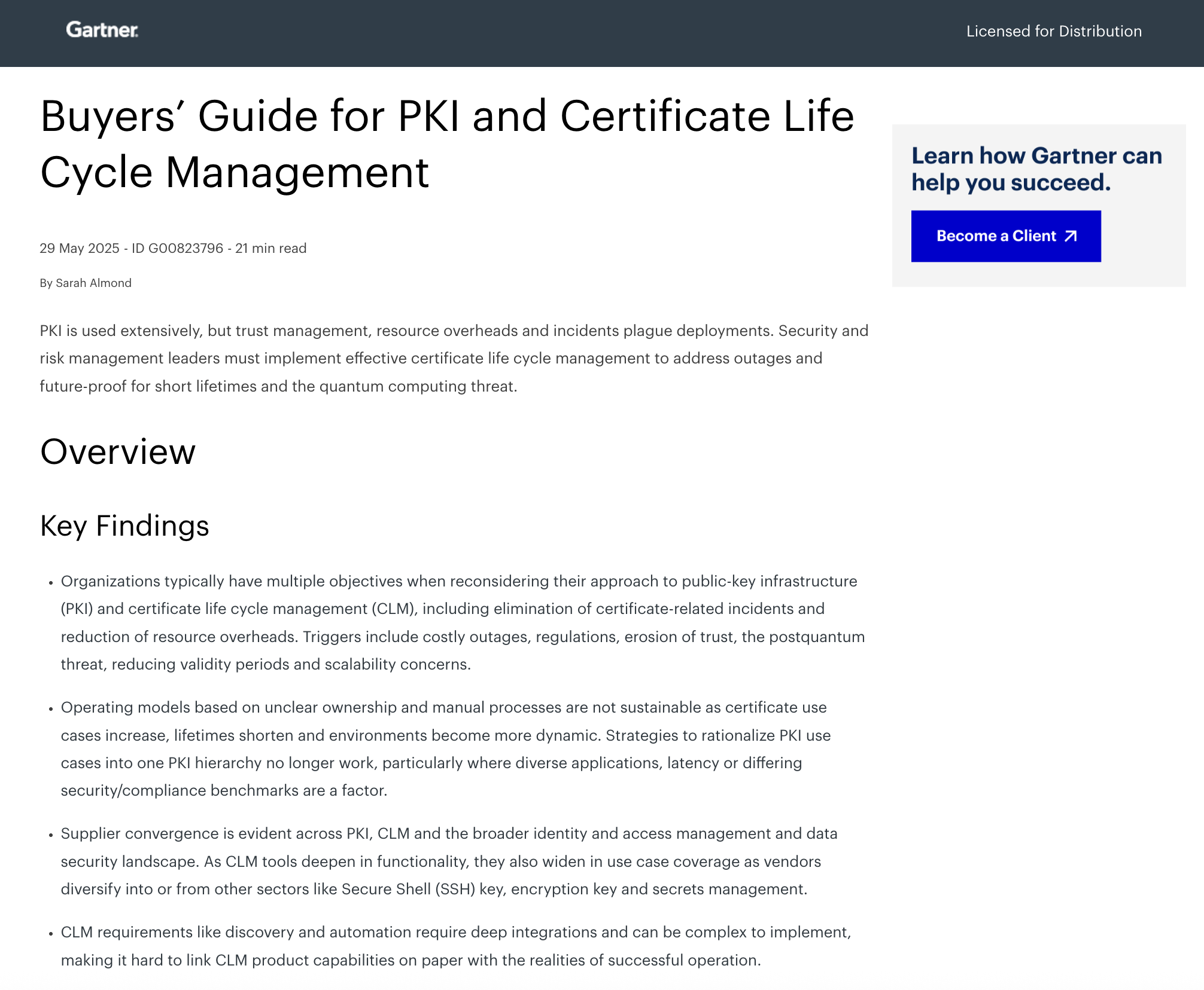 © Gartner, Buyers’ Guide for PKI and Certificate Life Cycle Management, Sarah Almond, 29 May 2025